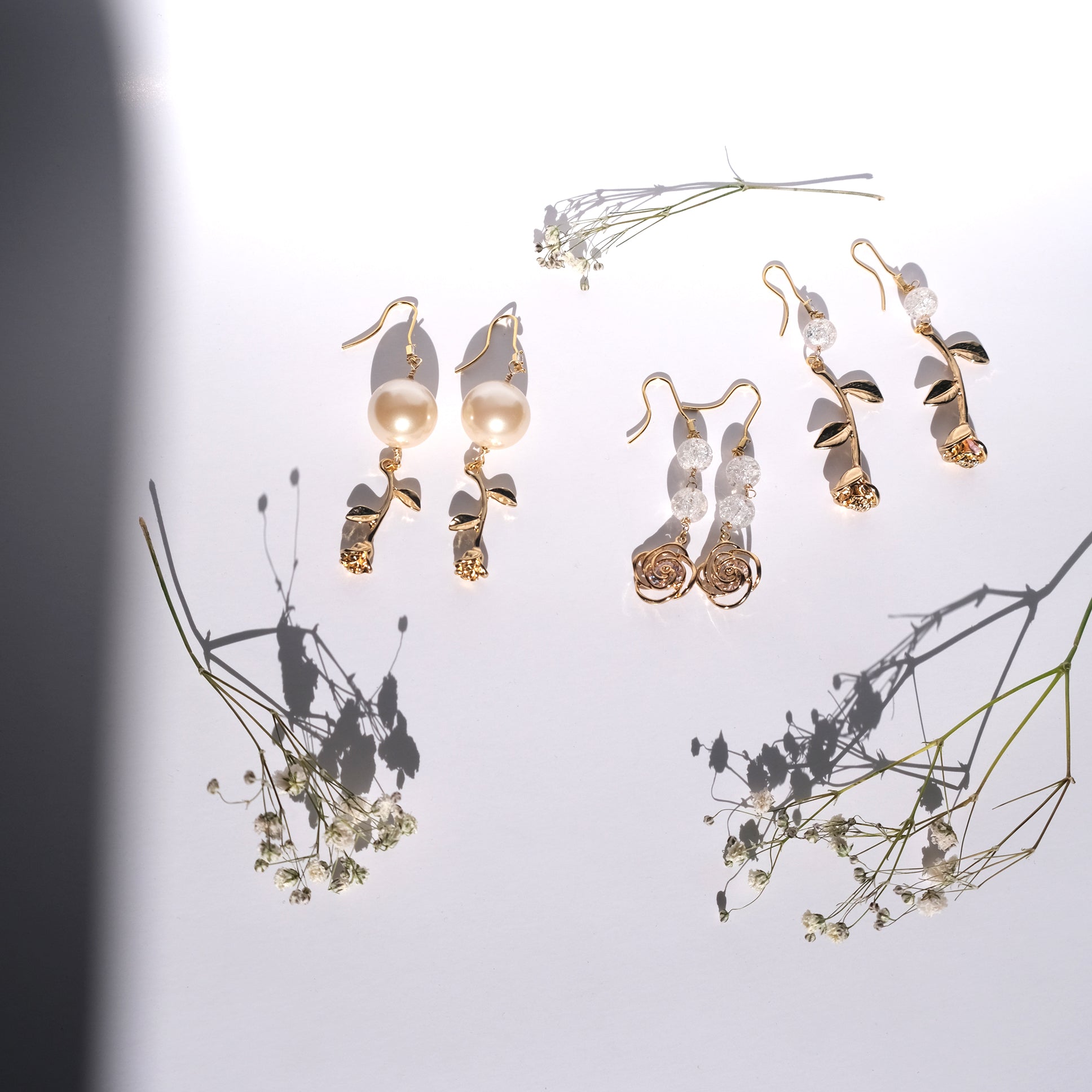 Delicate rose earrings that catch the light as they gently sway.