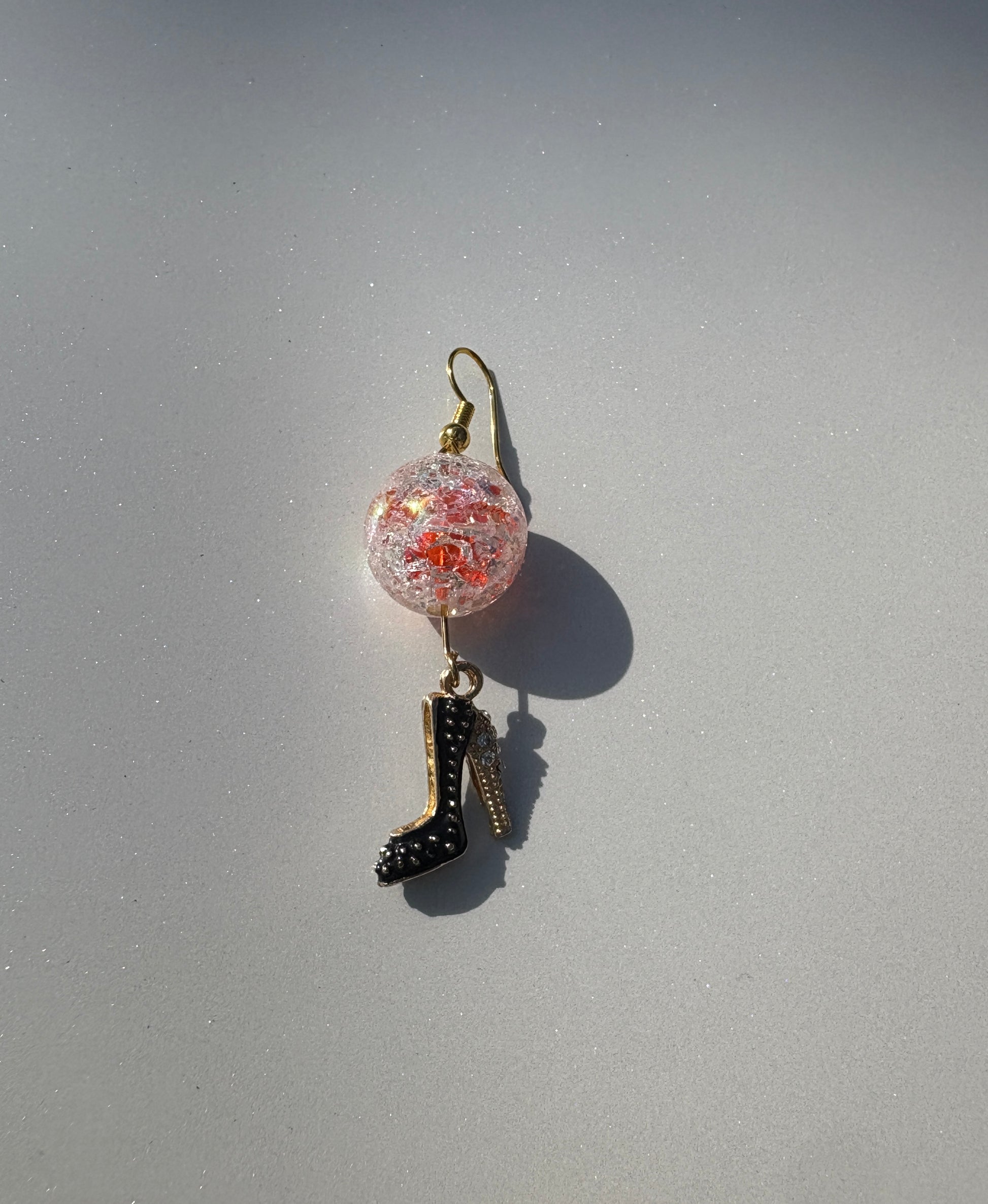 Mirrorball ornament with high heel charm.